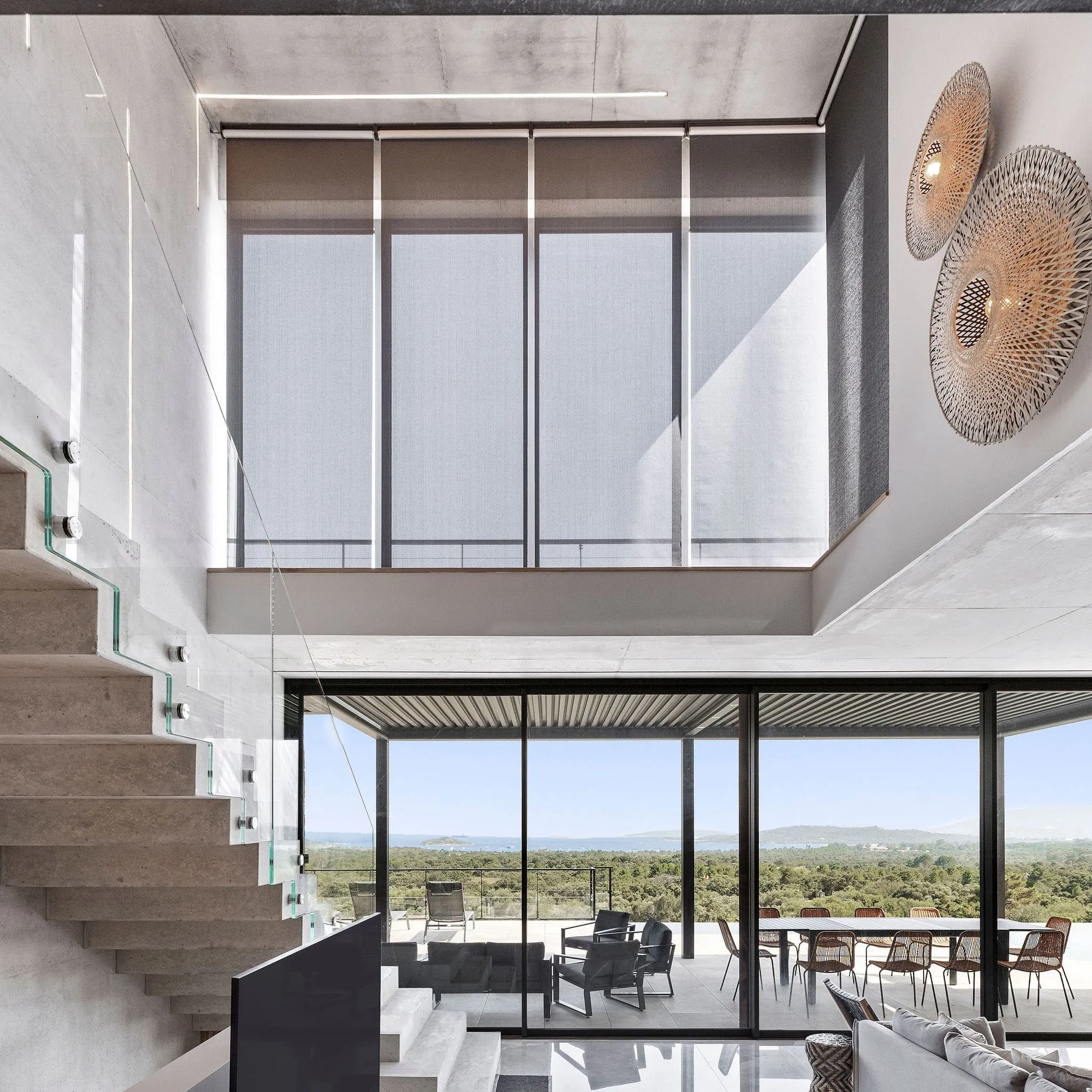 Présentant un tissu parfaitement plat et lisse, le store enrouleur a pour principal atout décoratif sa capacité à se fondre dans tous les décors en toute neutralité.