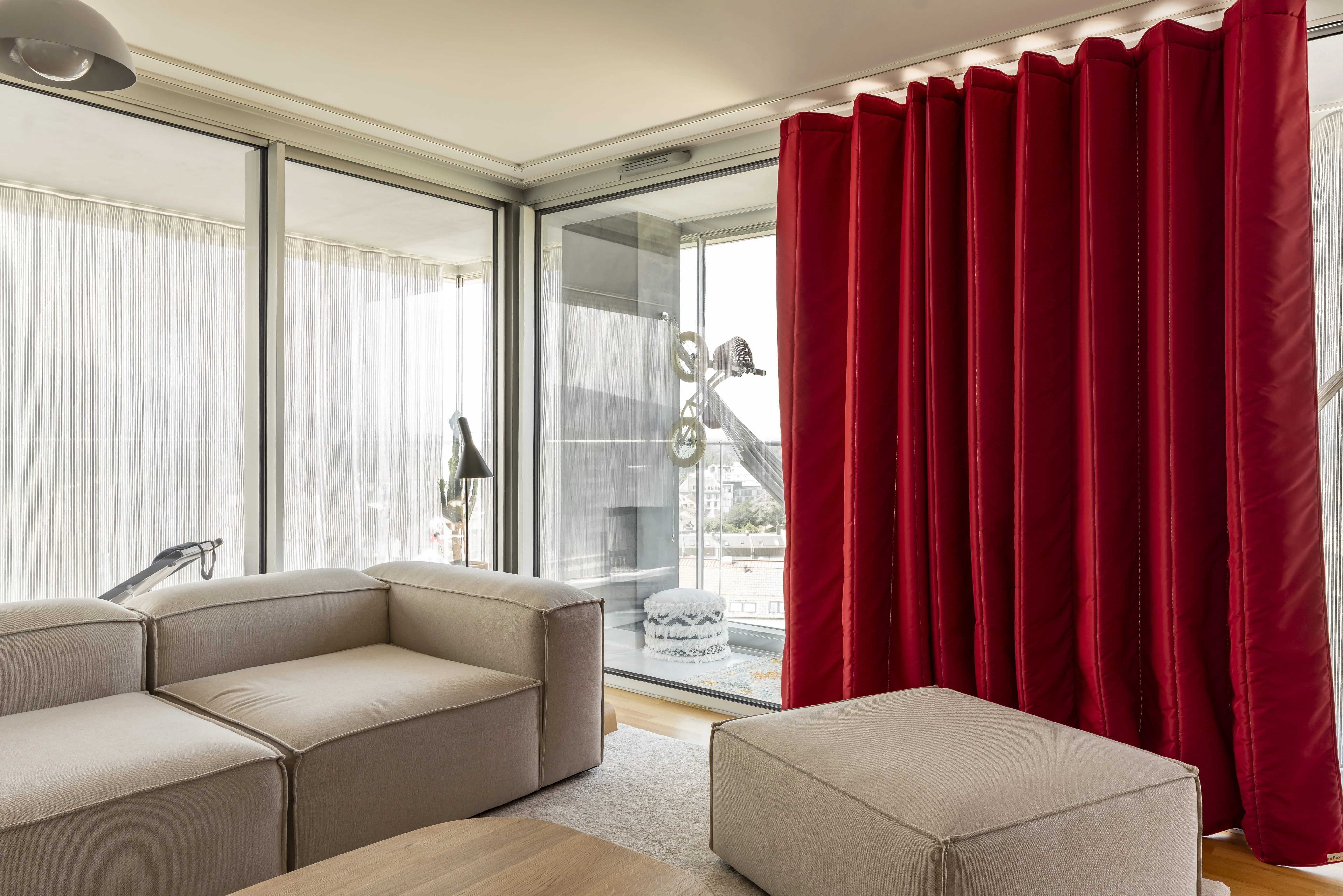 Chez REFLEX'SOL, le rideau thermique est une solution sur-mesure qui limite l’effet paroi froide des baies vitrées tout en préservant la lumière naturelle, grâce à des toiles techniques issues de la R&D française.